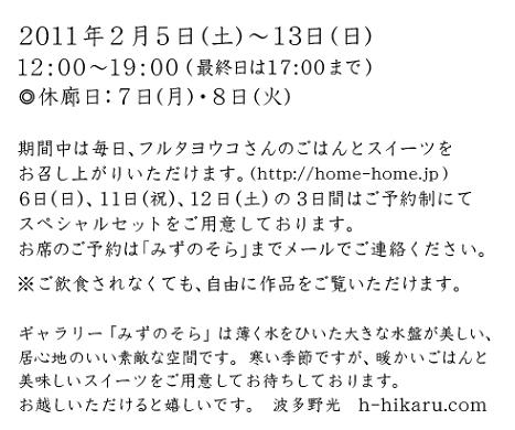 ご予約は、−水の空− 宛に、メールでお申込み下さい。